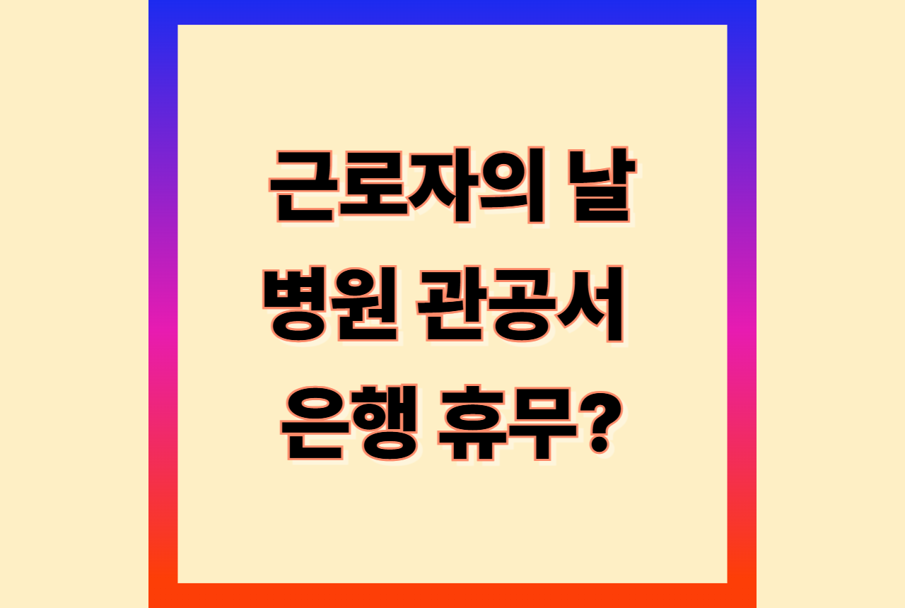 5월 1일은 근로자의날 휴무를 안내 해드립니다. 은행, 병원, 관공서, 학교 등 주요 기관들의 운영 여부가 궁금하시죠? 특히 병원 진료나 금융 업무가 필요한 경우, 사전에 확인하지 않으면 헛걸음을 할 수 있습니다.
